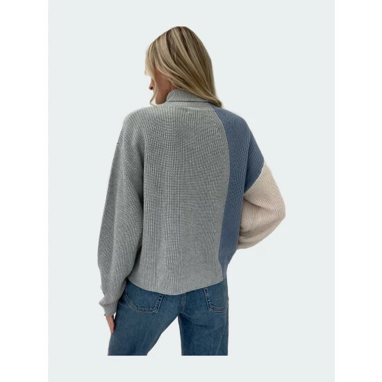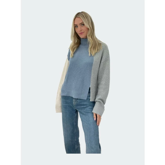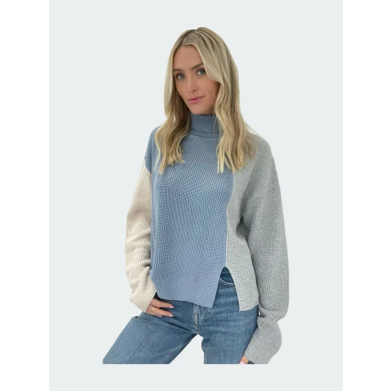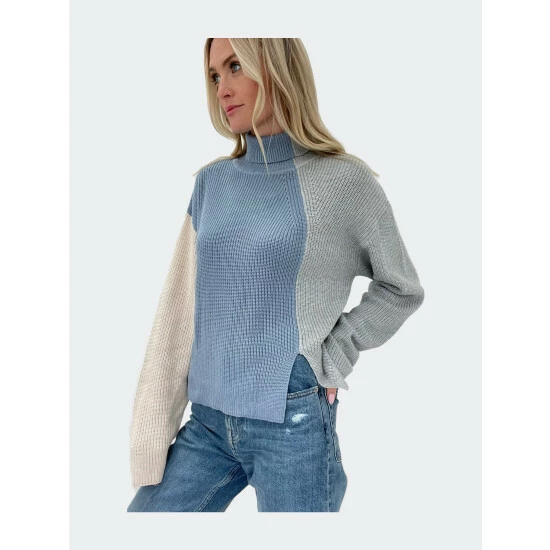 Six Fifty love the design of this sweater, a turtleneck with a colorblock design and a slit on the side. Pair it with our Hannah Trouser in either color, and you have the perfect look.