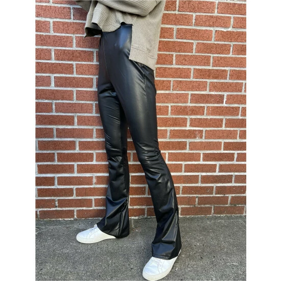 A high waisted flare pant with an elastic band – featuring a subtle flare bottom. Dress them down with a hoodie and sneakers – or up with a blouse and heels.