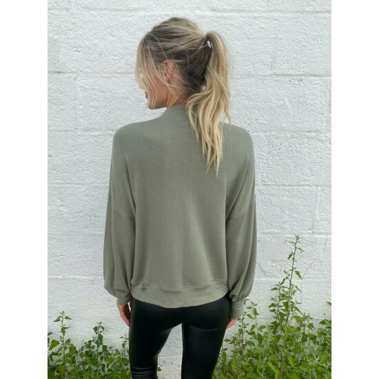 Featuring a mock neck and slight balloon sleeve in our lightweight french terry – this is a perfect fall top for looking put together while staying comfortable.