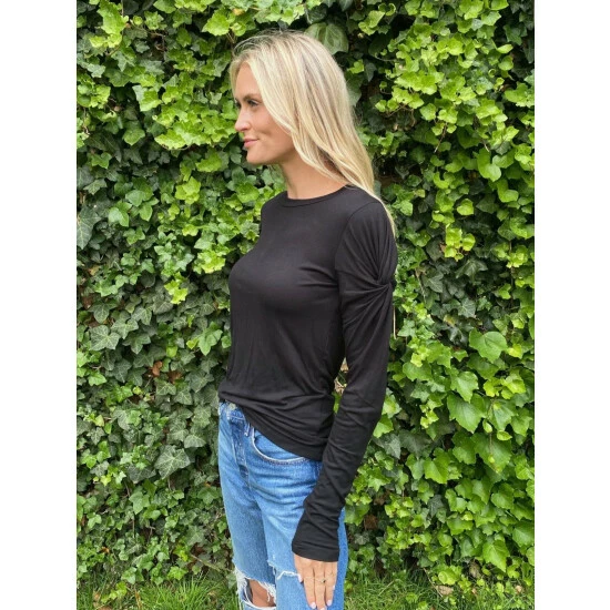 This is the perfect mix of statement and basic. The knotted sleeve detail is sure to make you stand out in any crowd while still having a chic, classic look.