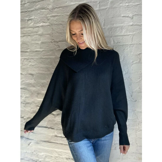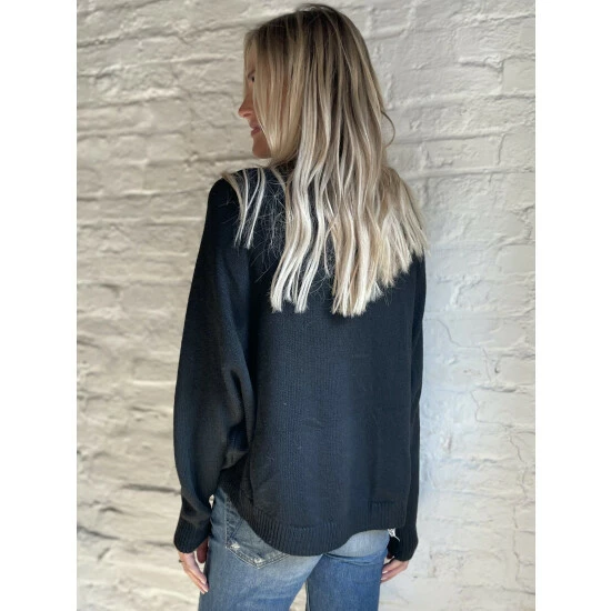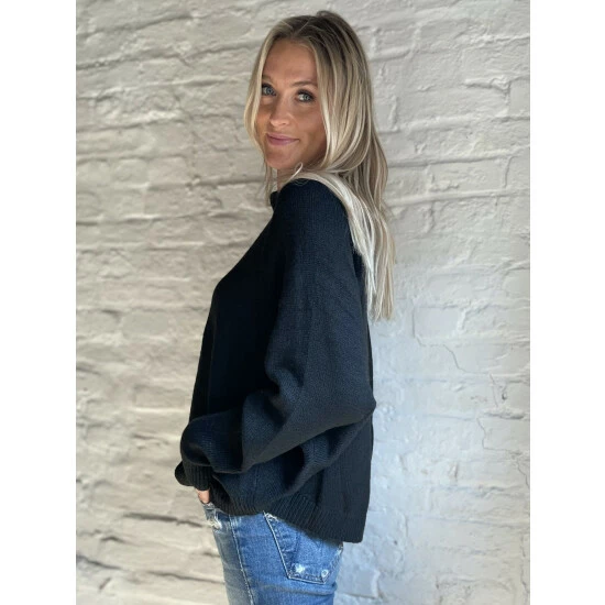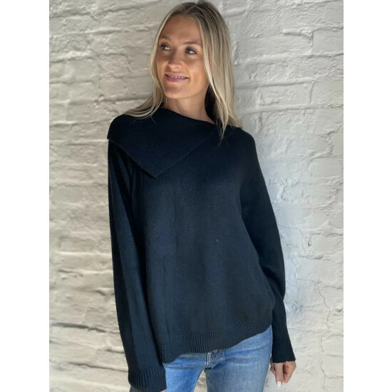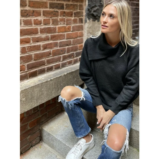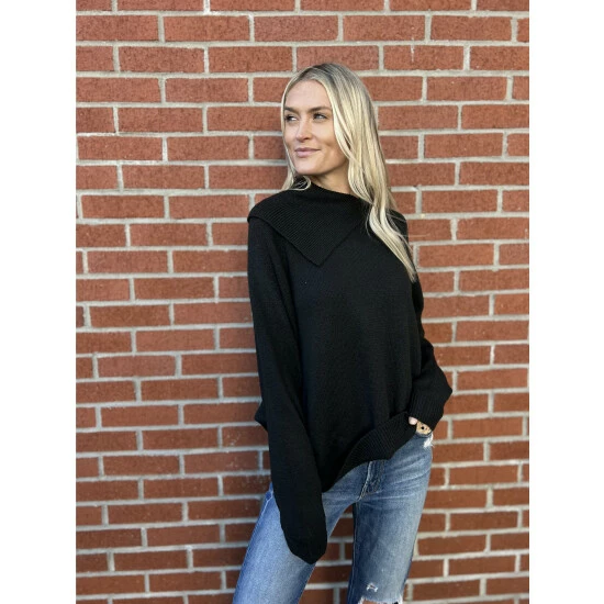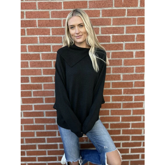 This cozy sweater is perfect for the fall weather to come. The fold over detail gives it an extra pop.