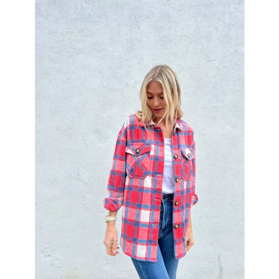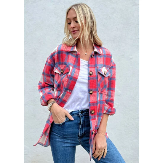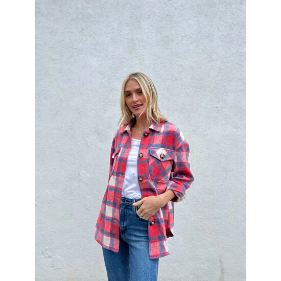 If you loved our previous shackets. This red and blue colorway is a must. Lightweight and perfect for layering.