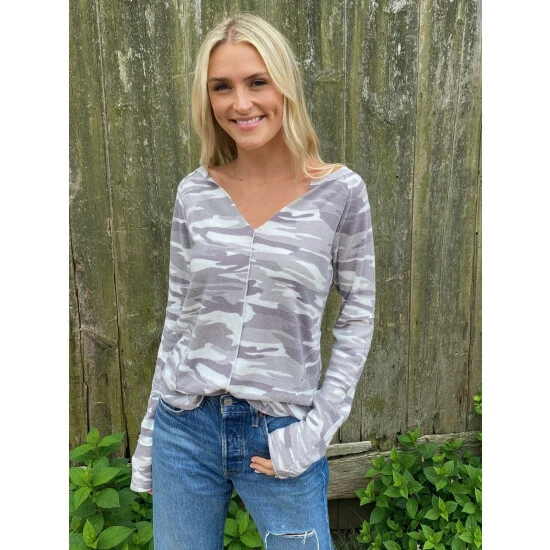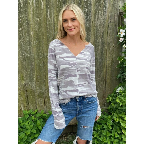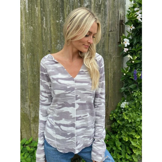 We combined our two favorite things [brushed hacci and white camo] to create the perfect henley! The open neckline and exposed seams give it a bit of novelty.