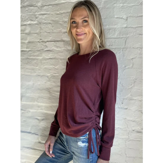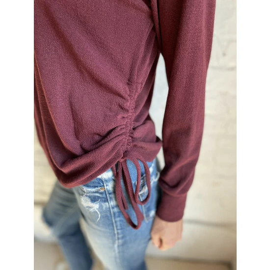 In our crepe hacci fabric, this top has a ruched side tie that’s adjustable for you to find your perfect length! Wear casually with sneakers and the sleeves scrunched up during the day, or with strappy heels and a leather jacket for a night out.