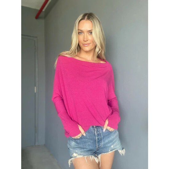 If you know six fifty…you know the anywhere top. In everyone’s favorite crepe hacci material, this top is our best seller for a reason. It can be worn three ways – on both shoulders for more of a cowl neck, off both shoulders, or off either shoulder! It has thumbholes and is our most versatile top, the name says it all.