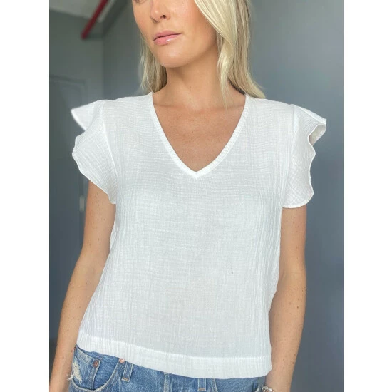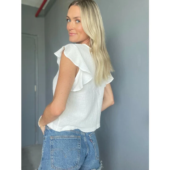 Gauze is all the rage right now! Fun and flirty, this lightweight top has a touch of novelty.