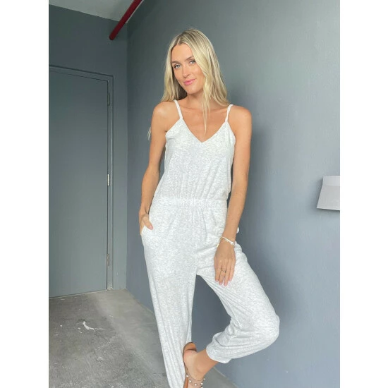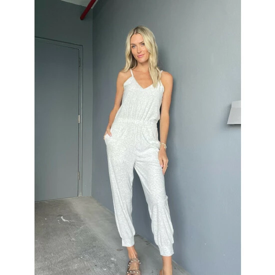 This jumpsuit features a v-neck, skinny straps, pockets and jogger bottom. Pair it with a denim jacket and sandals for brunch, and then strappy heels and chunky jewelry for the night!