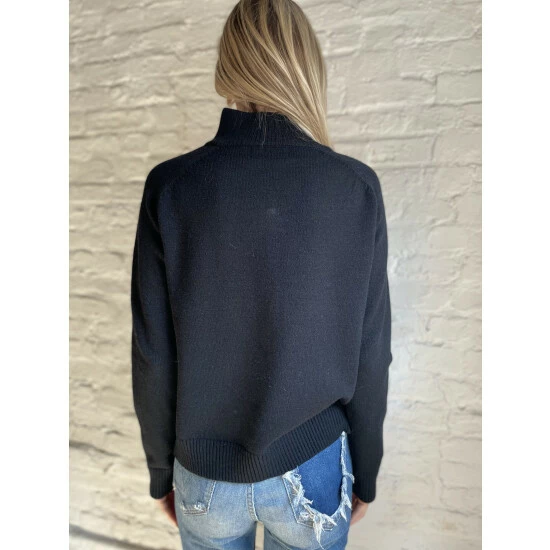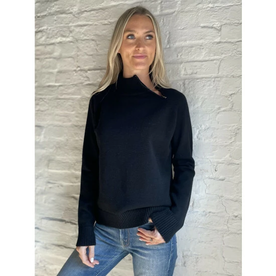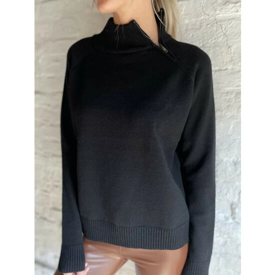 Not a basic sweater by any means, super soft and with a zipper detail at the neckline.